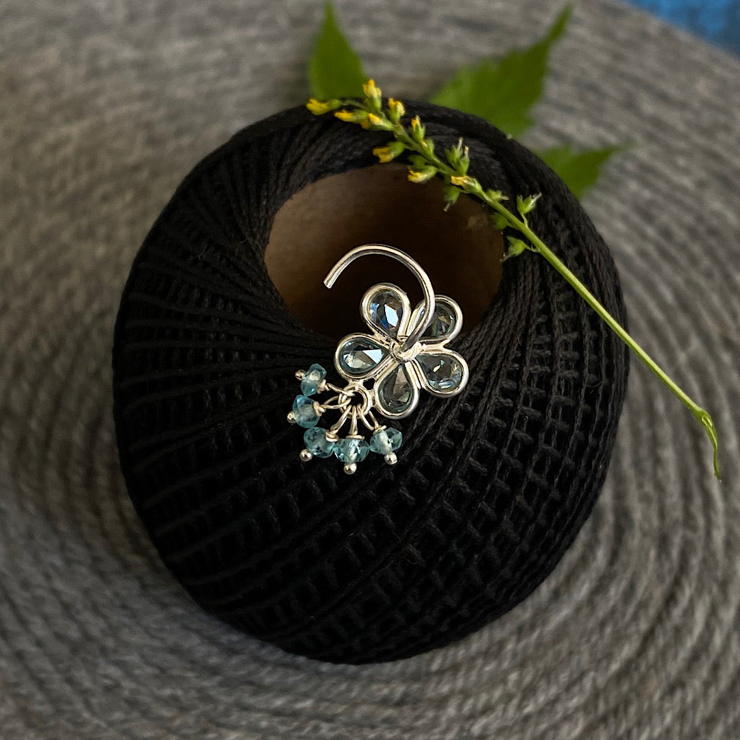 Aqua Flower Nose Pin