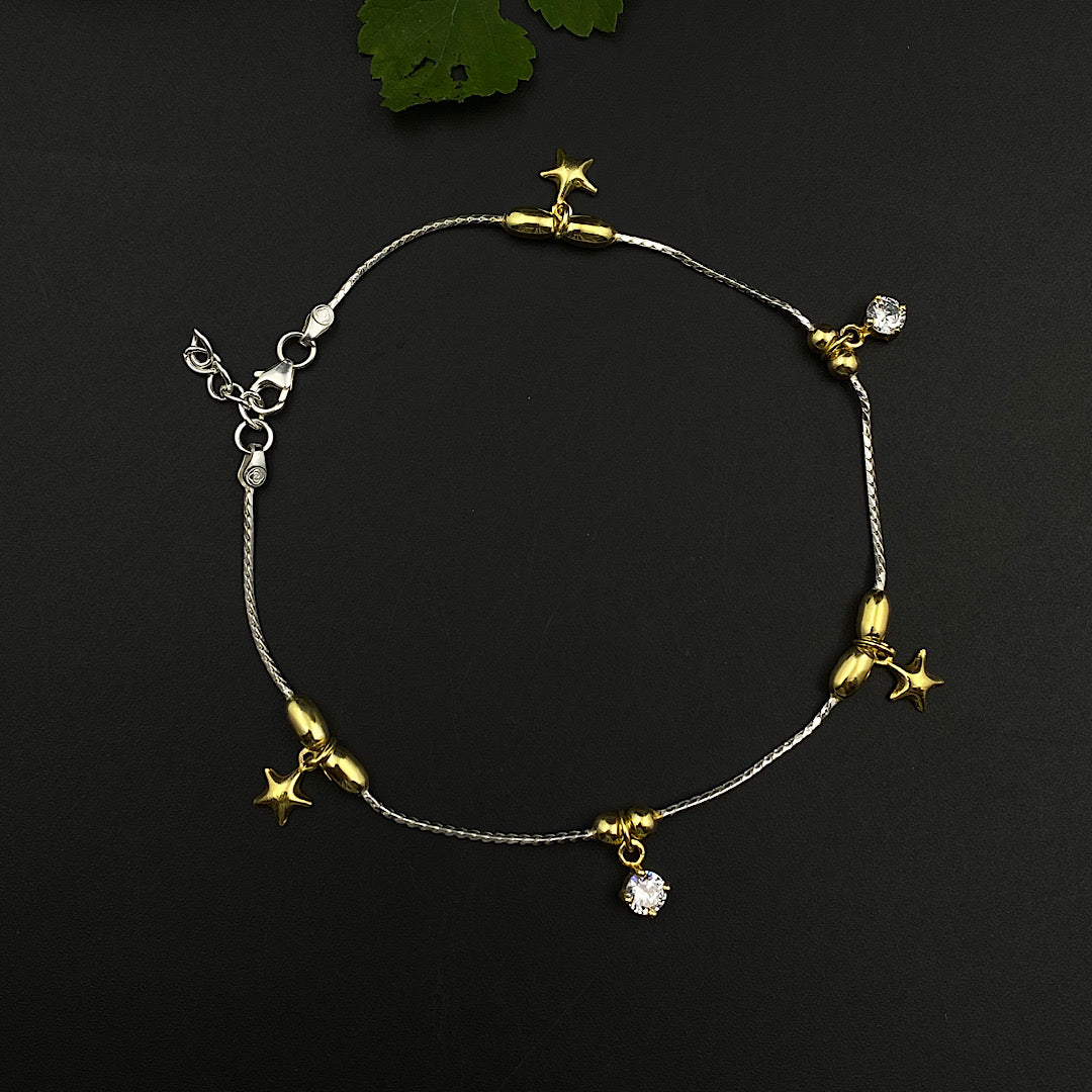Gold Star & Zircon Drop Anklet