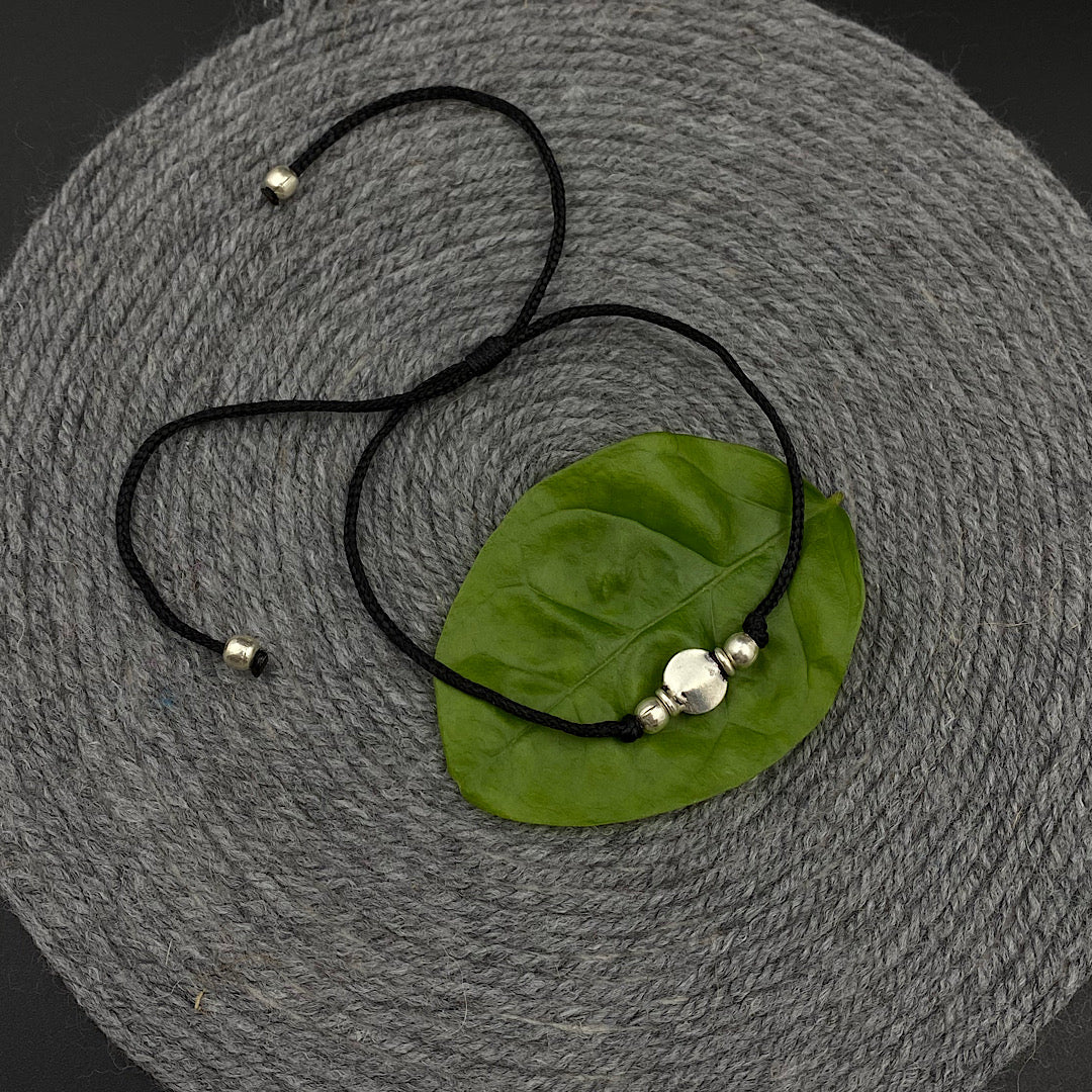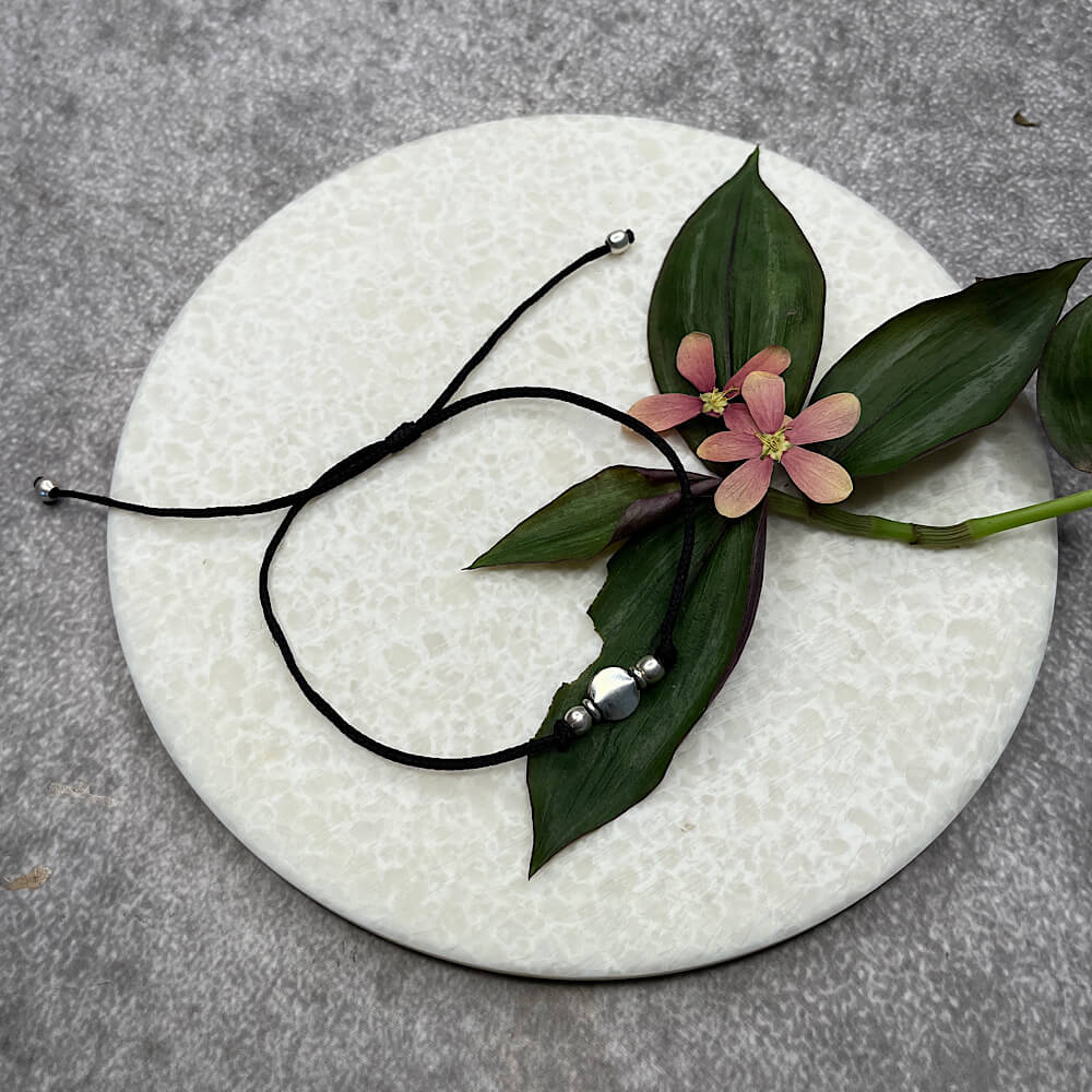 Silver charms embedded in adjustable black thread