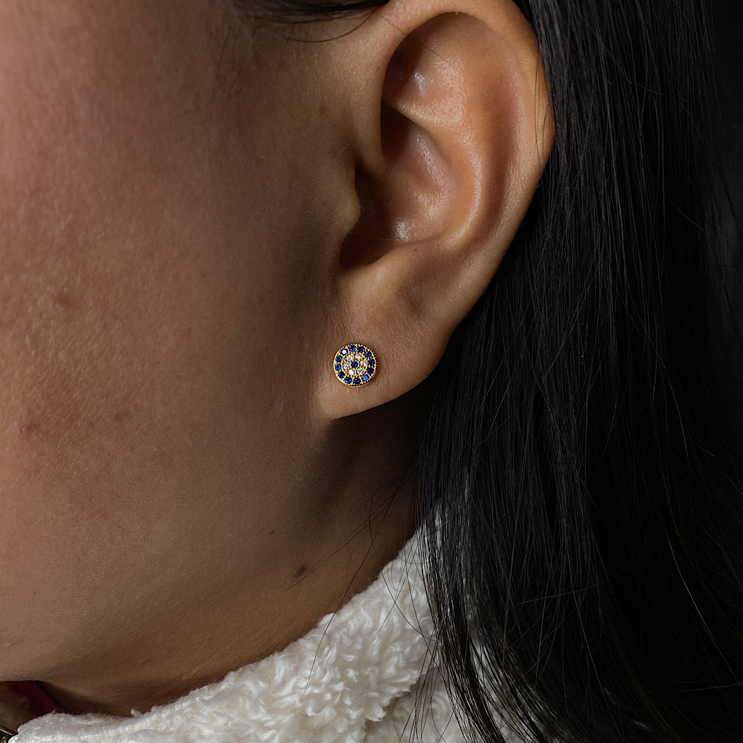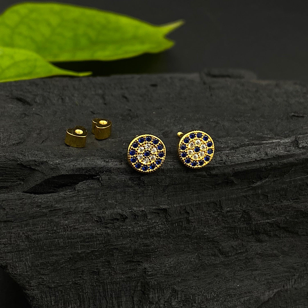 Gold Plated Evil Eye Screw Ear Studs