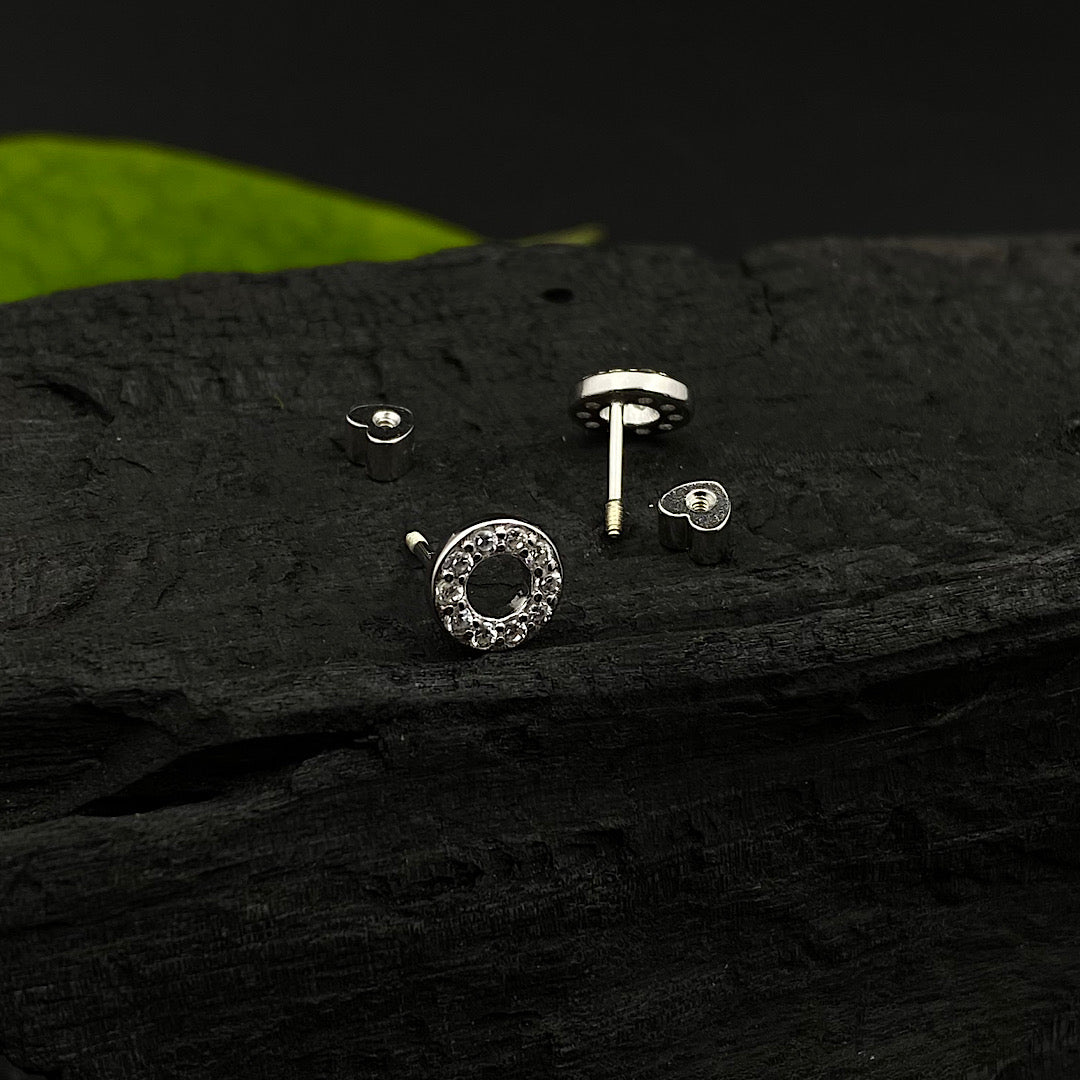 Round Zircon Screw Ear Studs