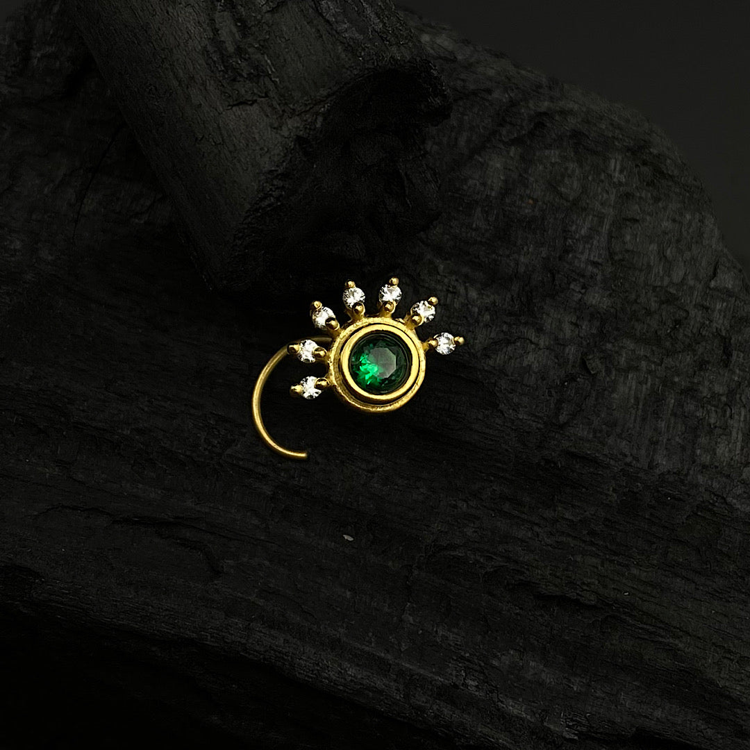Emerald & Zircon Petals Nose Pin