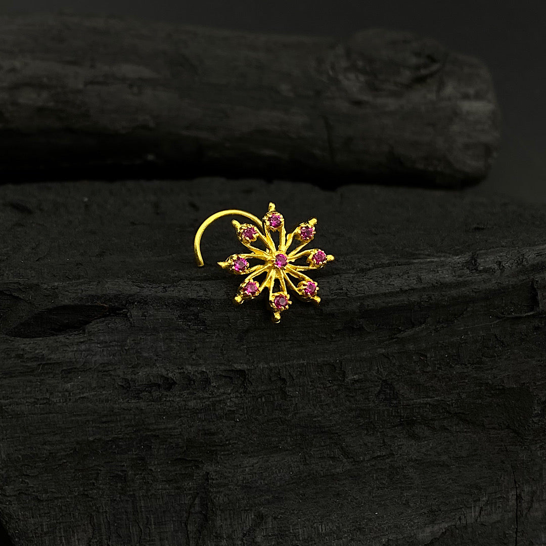Intricate Ruby Flower Nose Pin