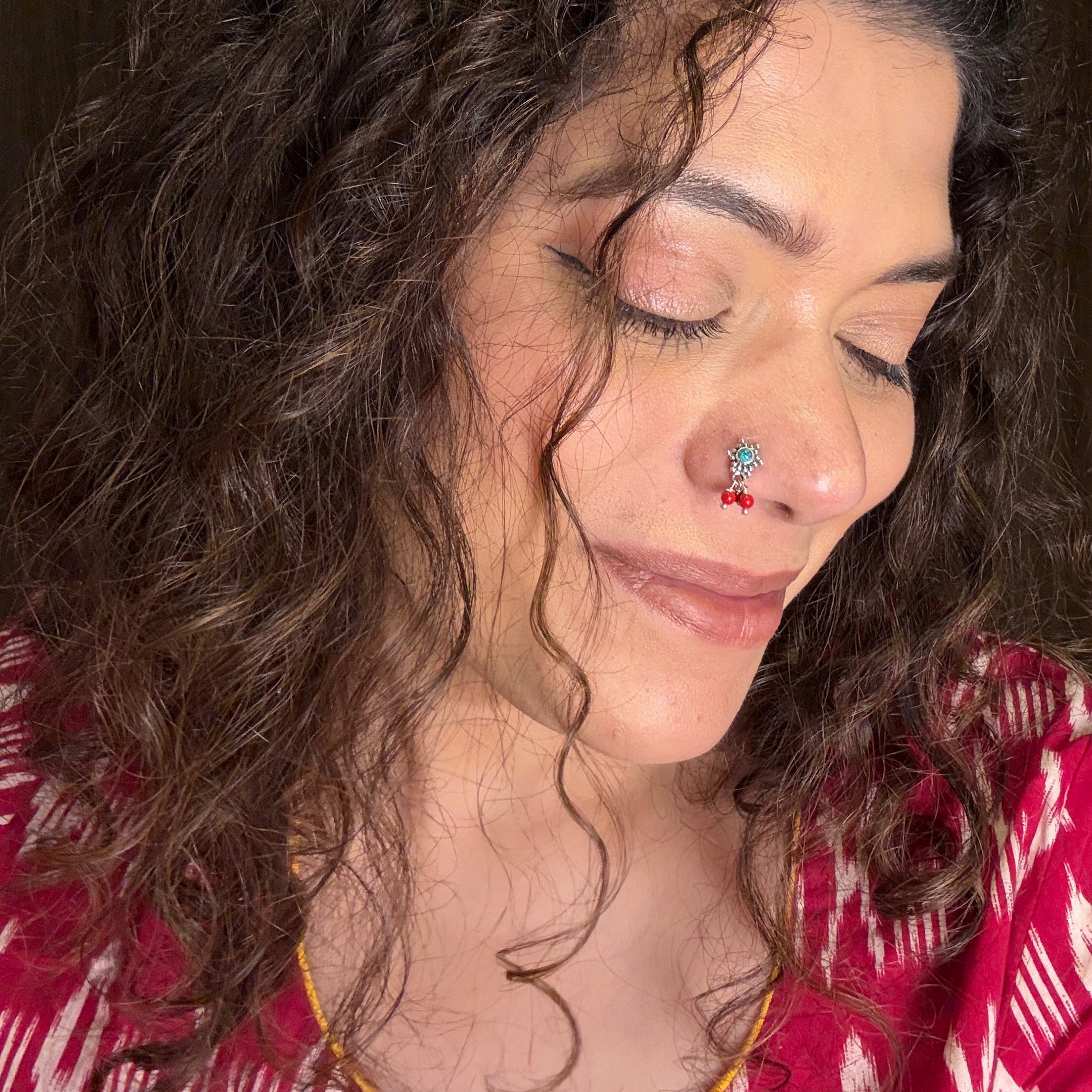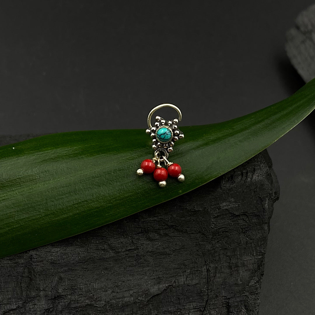 Turq With Red Beads Nose Pin