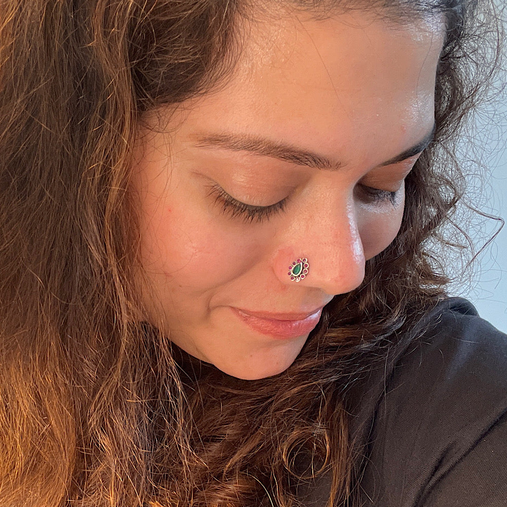 All stones are semi precious/top notch quality. It is advisable to keep stone nose pins away from prolonged contact with water.