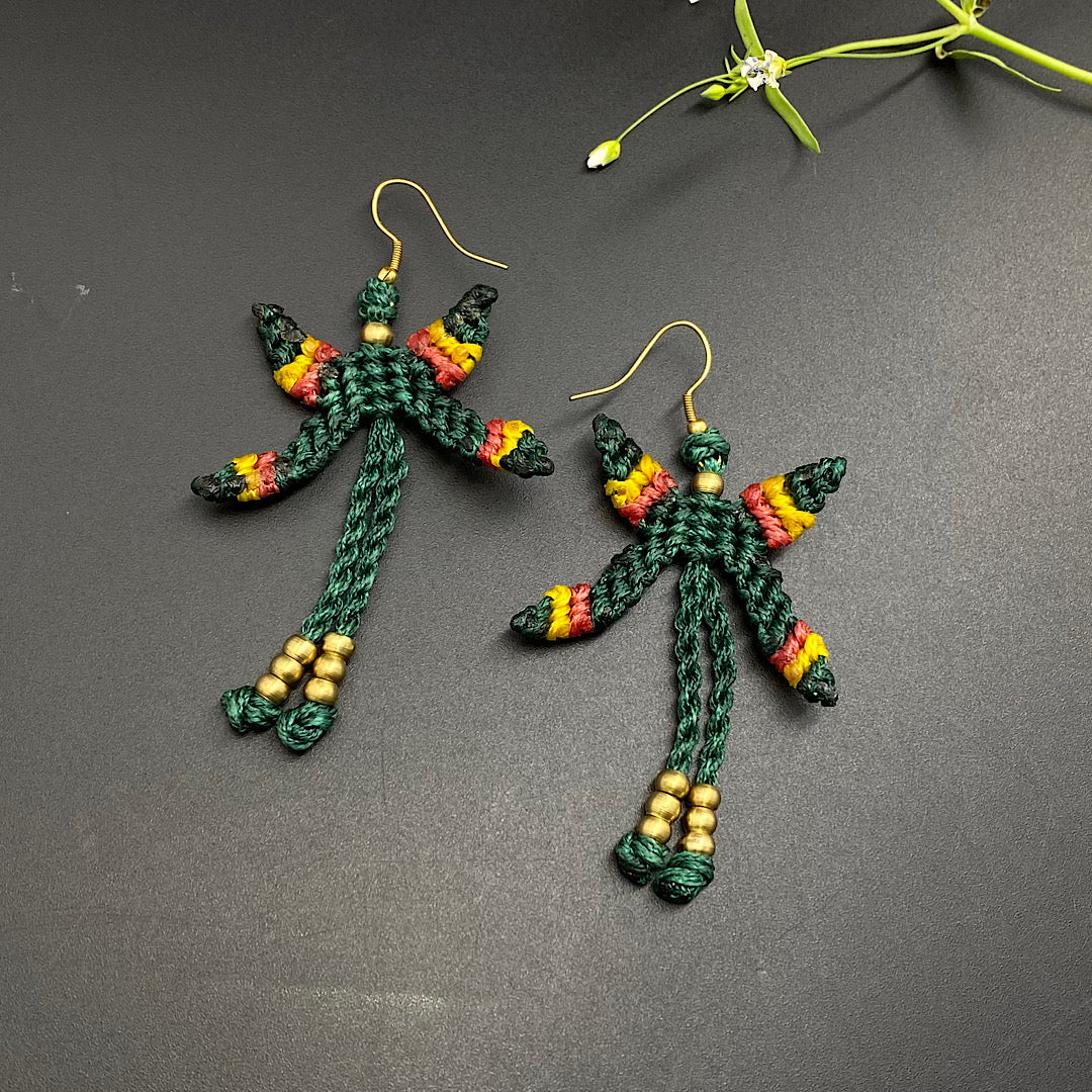 Olive Macrame Firefly Earrings