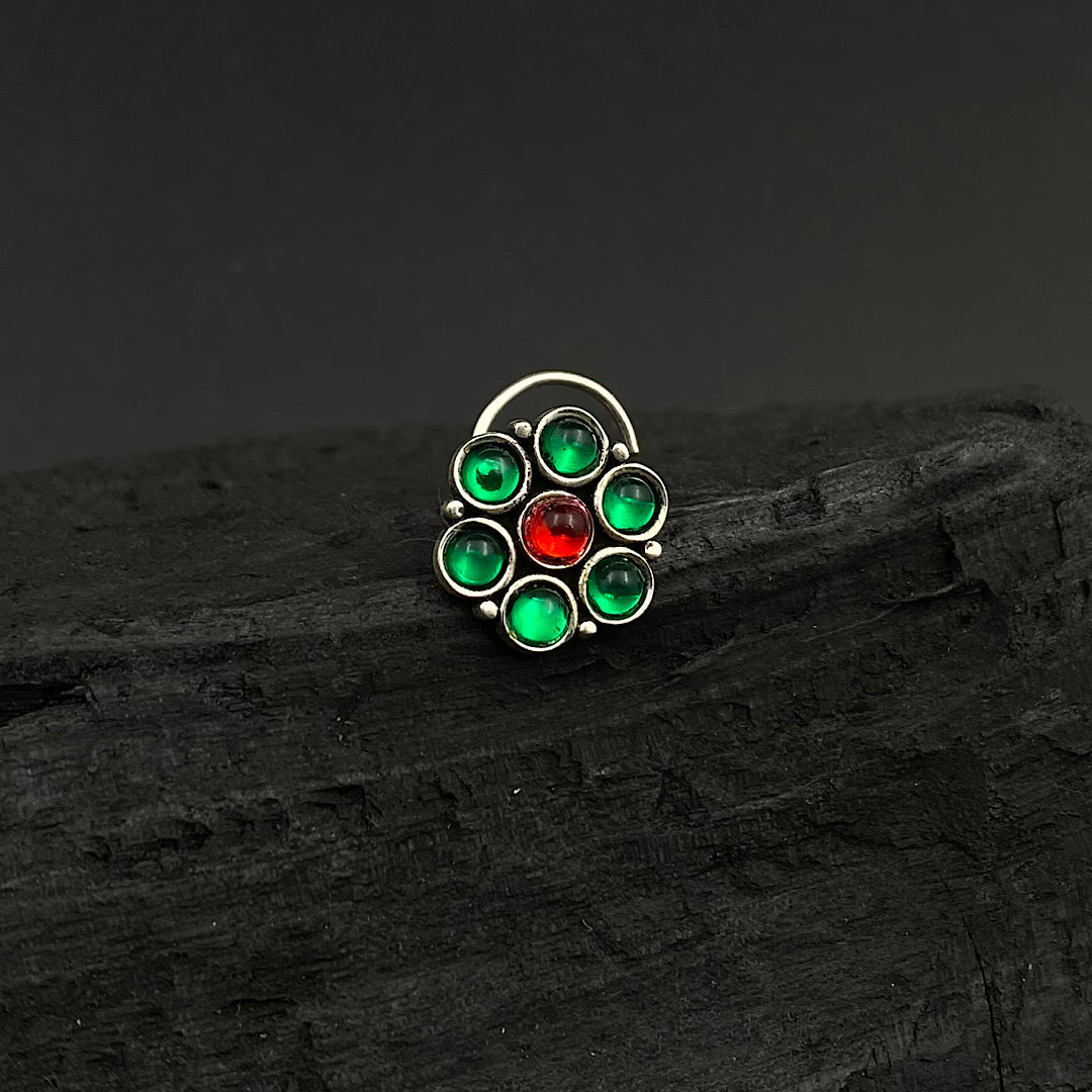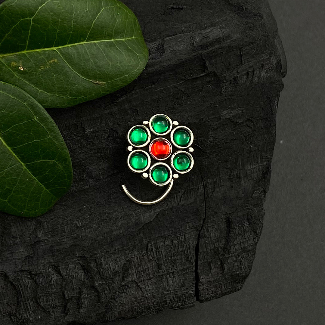 Green & Red Marigold Nose Pin