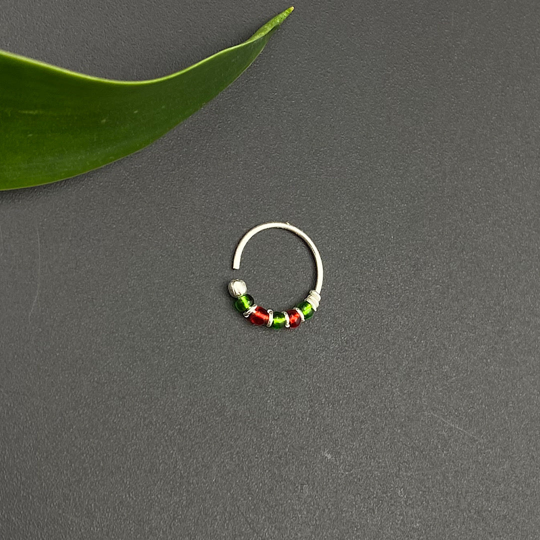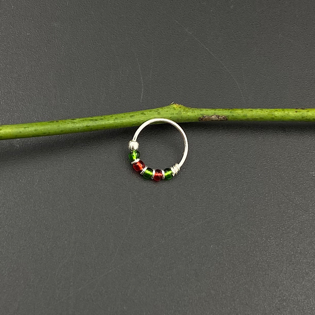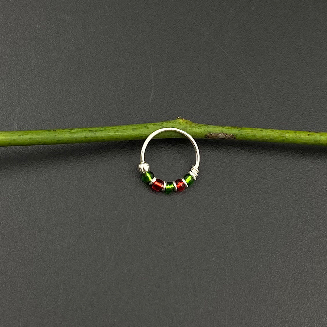 Green & Deep Red Beads Nose Ring (8.56mm)