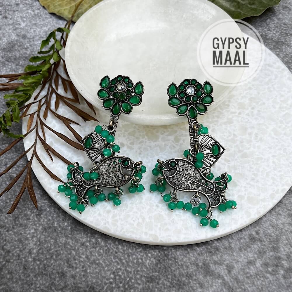Beaded Fish Earrings (Emerald Green)