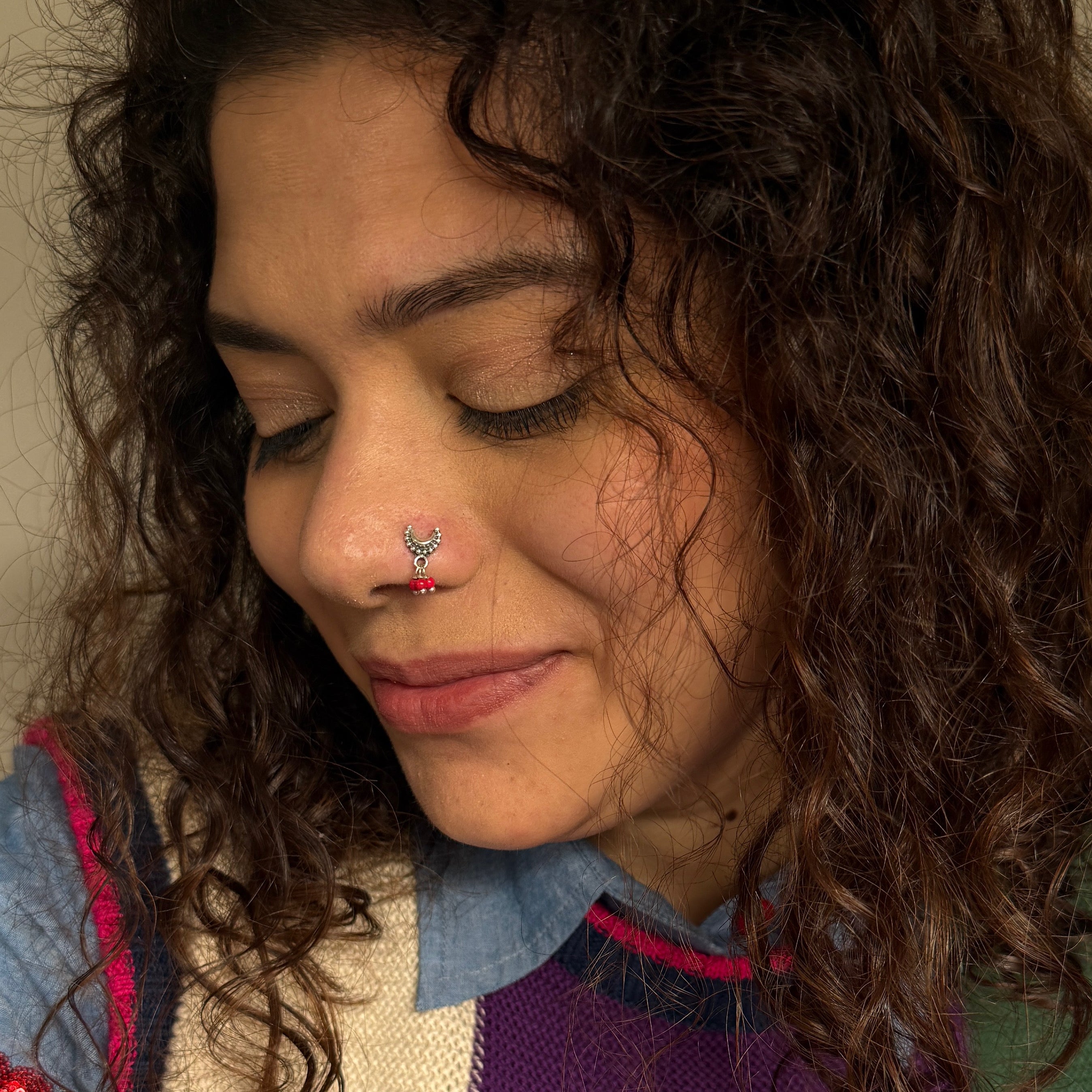 Red Crescent Moon Nose Pin