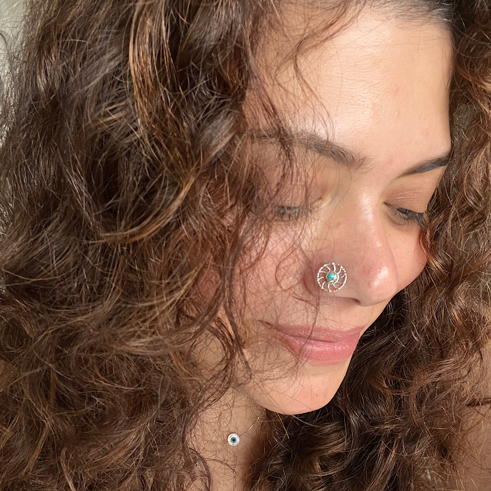 Turq Pin Wheel Nose Pin